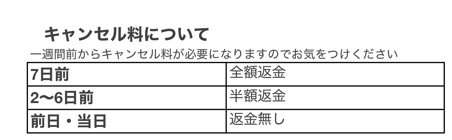 一週間前からキャンセル料が必要になりますのでお気をつけください。